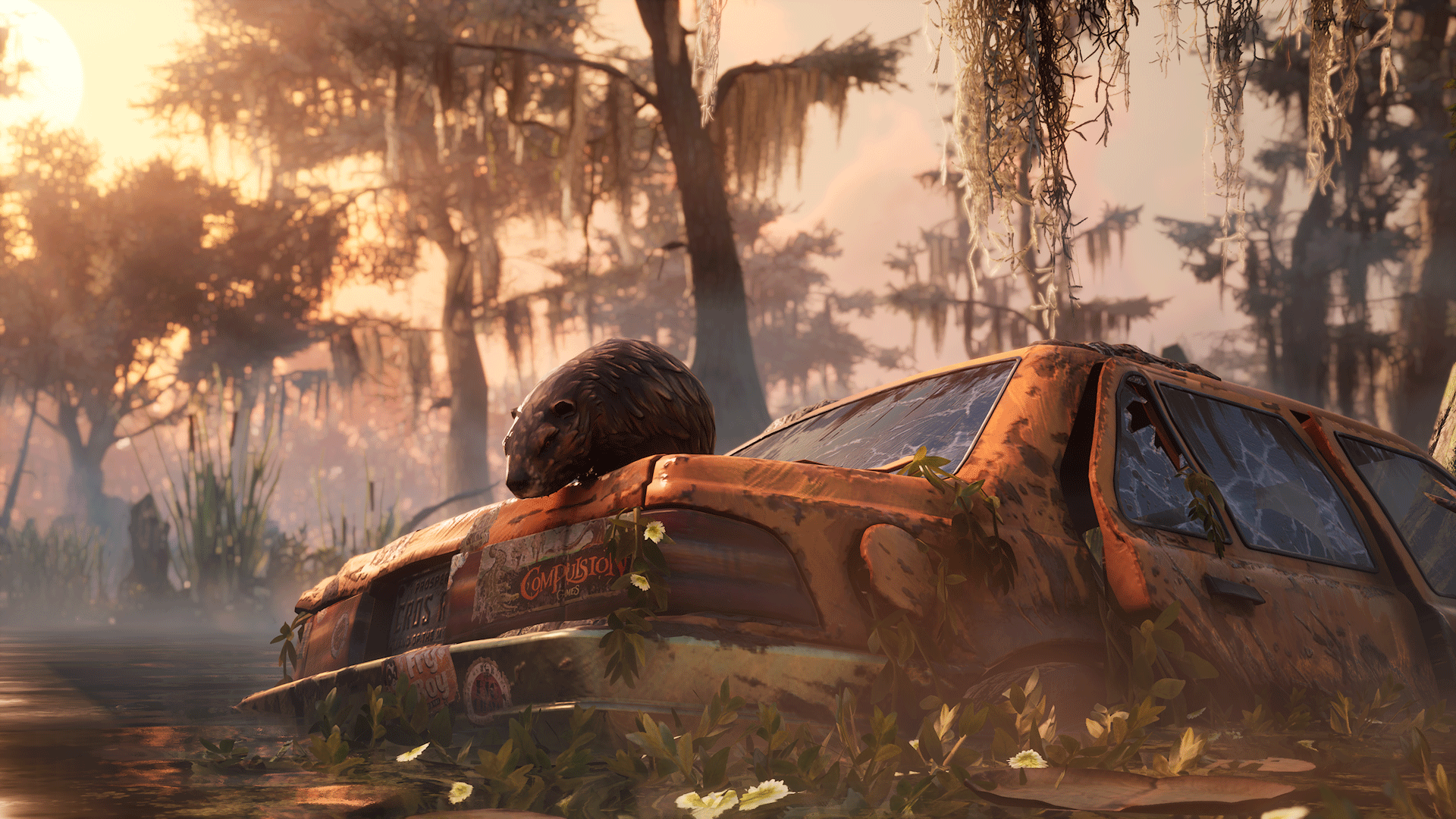 Hazel Flood, our main protagonist, is sent on a journey to find her mama, (this is the south) after their house had been swept away down river in a flood by a hurricane. The deep south setting mixed with the gothic folklore is felt throughout my time playing the game, from the diction of the characters to traveling across locations of Prospero. I was often caught gazing into the surrounding swamps, rustic broken-down buildings or lost in the tree tops looking out at the area below.