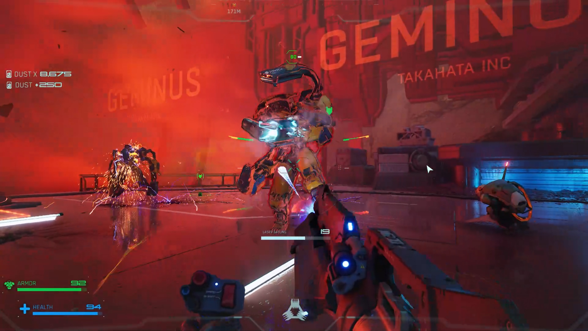 With good gameplay must come the power: GUNS! We’re issued a standard submachine gun with an infinite amount of ammo. It’s always something to fall back on. However, an overclock heat meter does prevent us from endlessly spraying on all cylinders. The ENZ-5, a go to for me that shreds enemy armor, opening them up to remove their core, which will allow you to become stronger with a melee smack down. Which, when upgrading, the ENZ-5 will also feature a grenade launcher that nearly vaporizes the enemies in front of our eyes. Or toss a grenade that freezes them in place with shattering results. It’s the fast-paced action I fell in love with when it came to Metal Eden.
