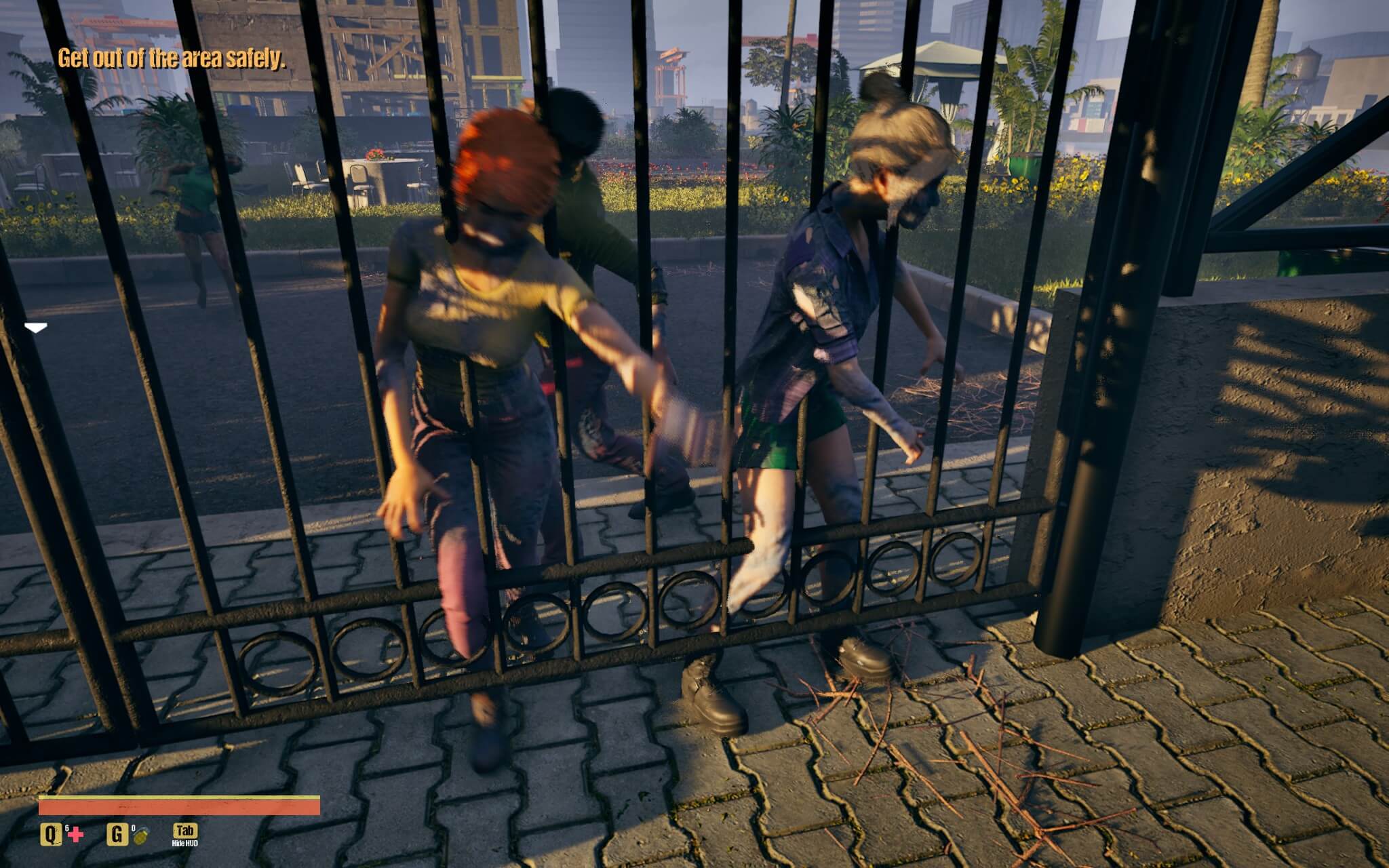 As the introduction dictates, the player is pushed forward through the city amid the zombie outbreak, passing pockets of citizens fighting off groups of the undead. These brief glimpses of NPCs battling each other were a sight to behold. (I didn’t capture footage, but it looked like groups of people waiting for a train accompanied by a soundtrack of gunfire and zombie noises.) It quickly became clear that the graphics and animations would be terrible, broken, or most likely BOTH.